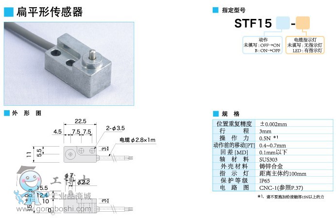 麻電子 無觸點觸摸STM8L-TS 3毫米行程重復精度0.001mm”的詳細描述:
