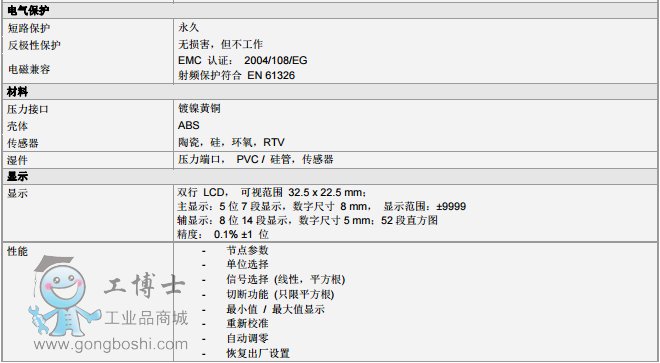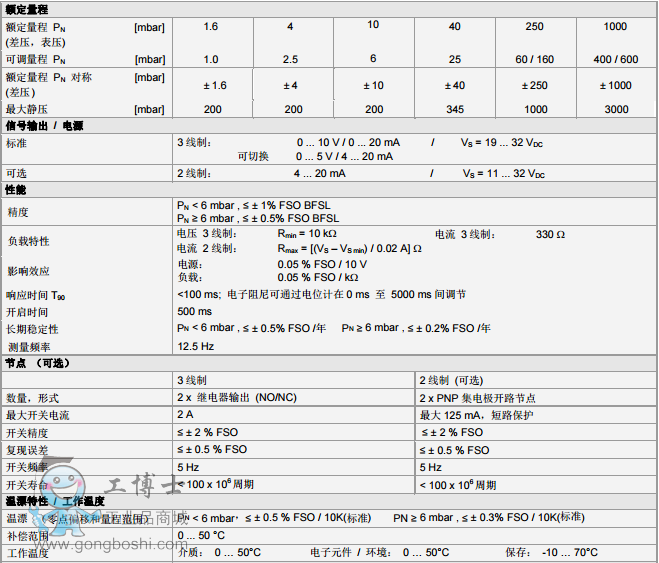 差壓量程:從0...1.6mbar 至 0...1000mbar