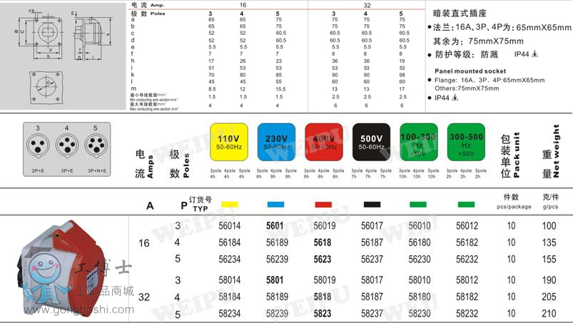 暗裝直式插16-32A