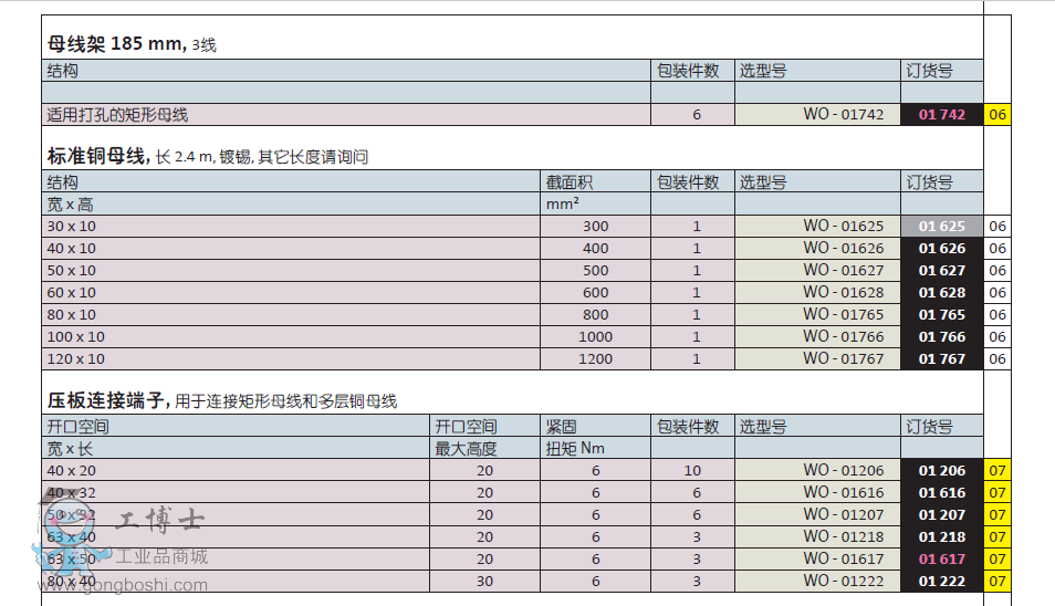 母線架 185 mm, 維納爾01 617