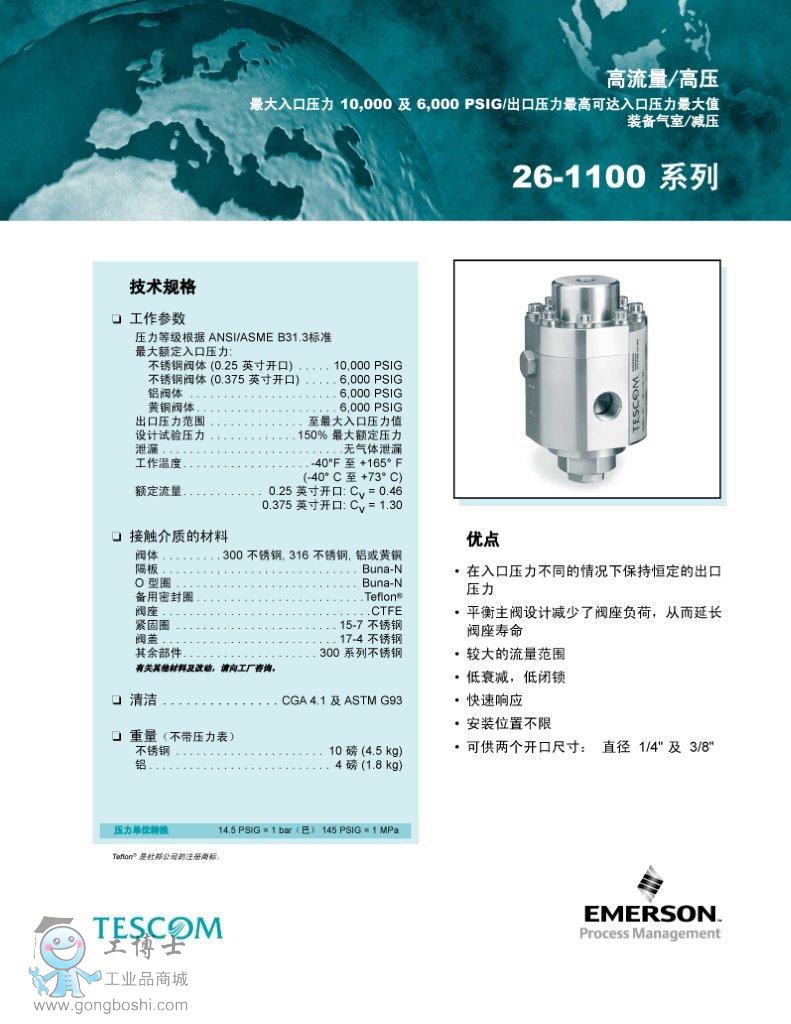 TESCOM調壓閥 裝備氣室調節閥 26-1100 系列-艾默生EMERSON TESCOM