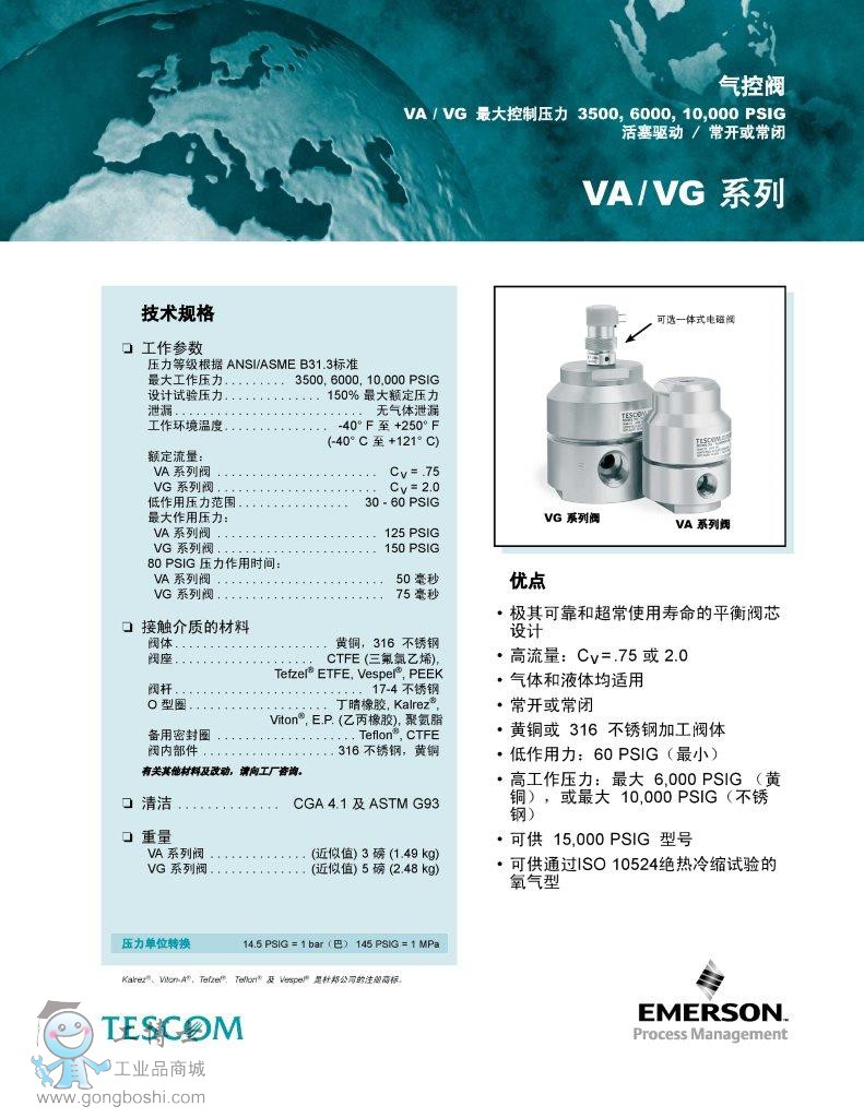 TESCOM調(diào)壓閥 閥門VA / VG 系列-艾默生EMERSON TESCOM |