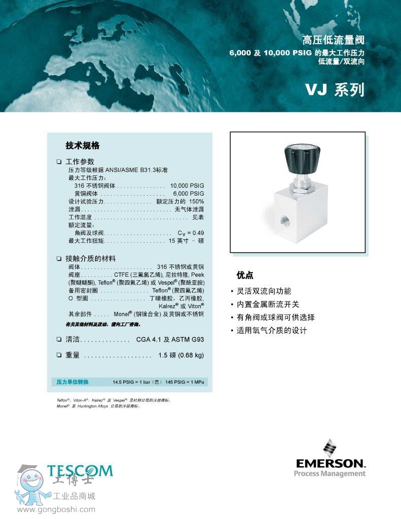 TESCOM調壓閥 閥門VJ系列-艾默生EMERSON TESCOM