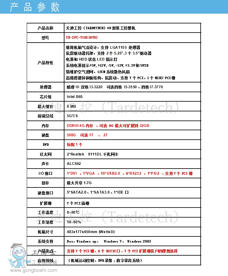 天迪工控機【帶7個PCI槽】TD-IPC-710i