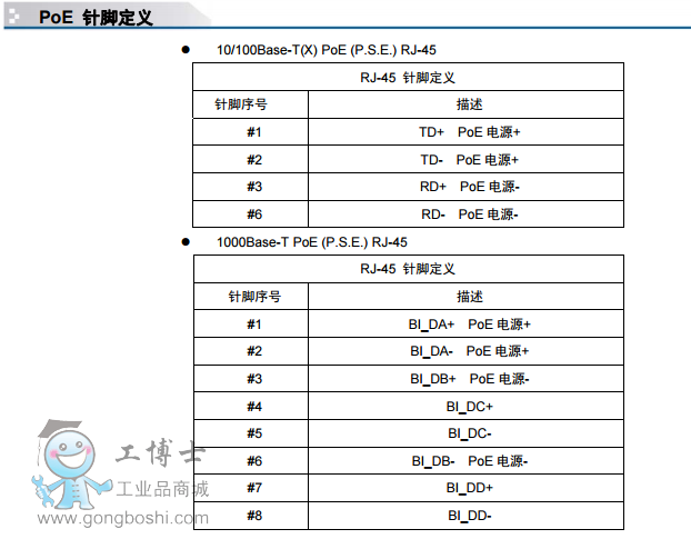 地恢復,保證重要應用的不間斷通訊。IGPS-R9084GP系列符合IEEE802.3 at協議,每個端口提供*大30W輸出。此外,支持-
