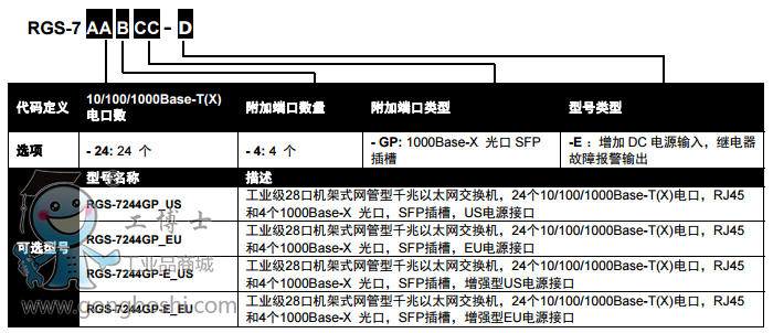 RGS-7244GP/RGS-7244GP-E千兆網管型以太網交換機,提供24個10/100/1000Base-T(X)電口,RJ45和4個1000Base-X光 口,