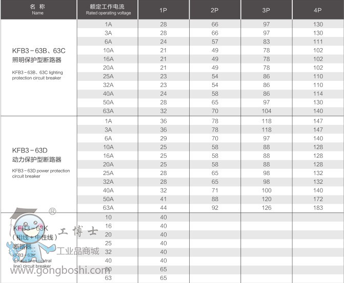 KFB3系列小型斷路器:KFB3-63K