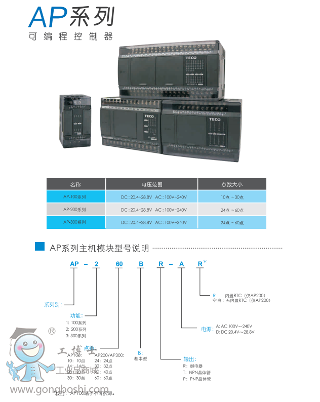 臺安PLC 可編程控制器AP-120BR-A交流型繼電器,14點輸入/輸出