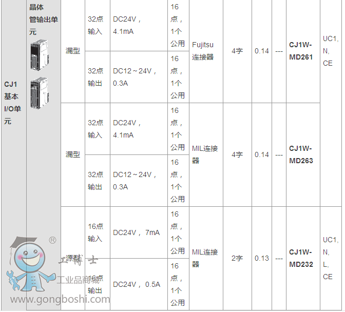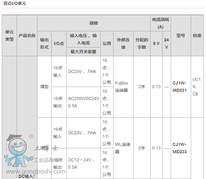 歐姆龍CJ系列混合I/O單元:CJ1W-MD263 |