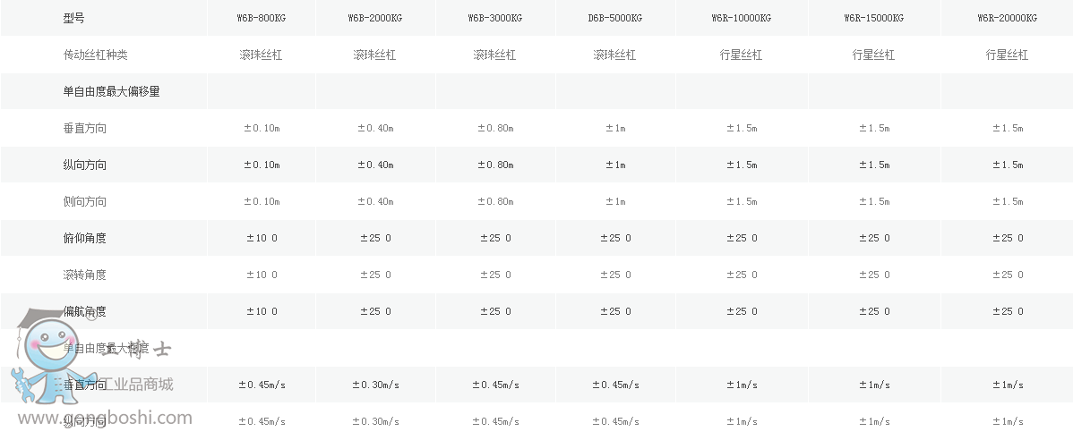 精密定位六自由度平臺W6B系列參數(shù)規(guī)格
