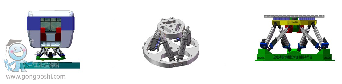 根據(jù)客戶訂制的特殊上下平臺,有限元分析保證足夠的強度,上平臺可以增加旋轉(zhuǎn)平臺,增加到7自由度。