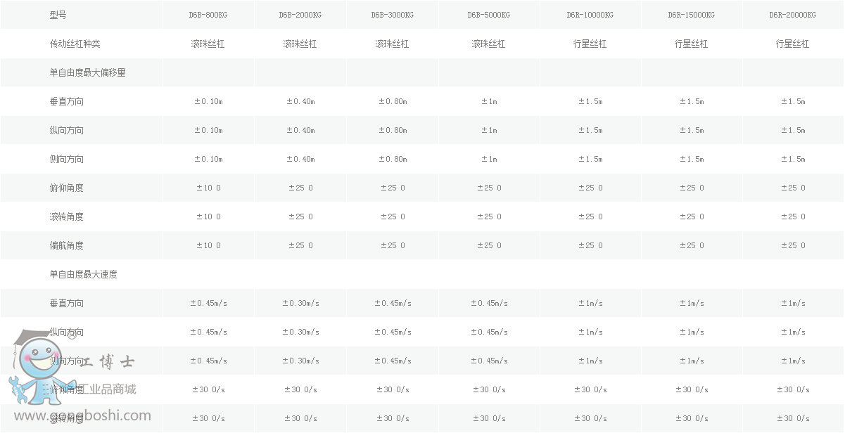 動感仿真六自由度平臺D6B系列參數(shù)規(guī)格