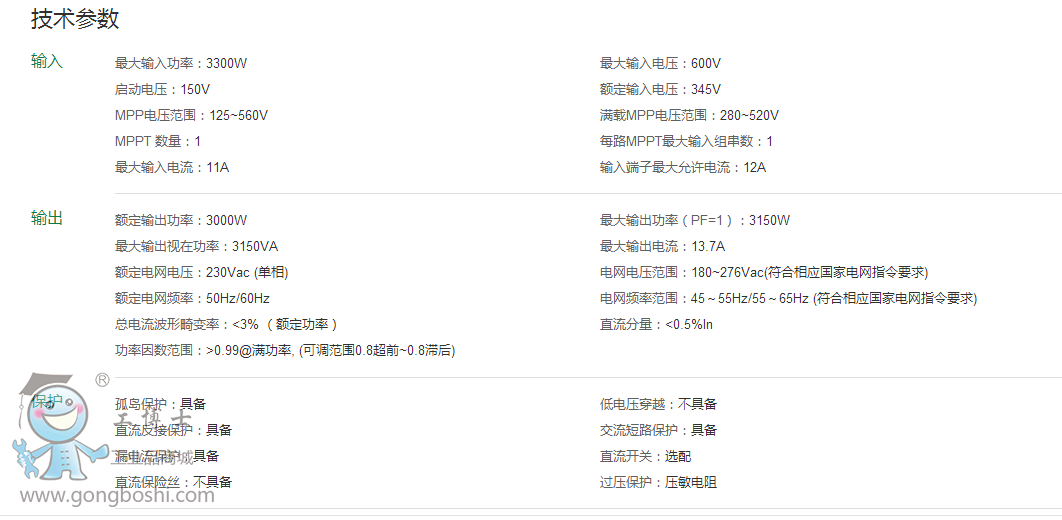 陽光電源光伏逆變器:SG3KTL-S