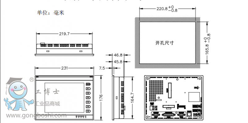 4.ABB觸摸屏產品開孔尺寸: