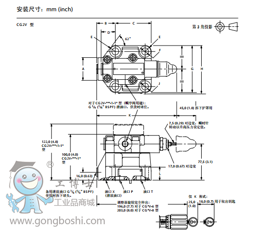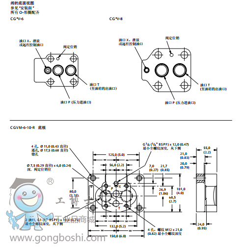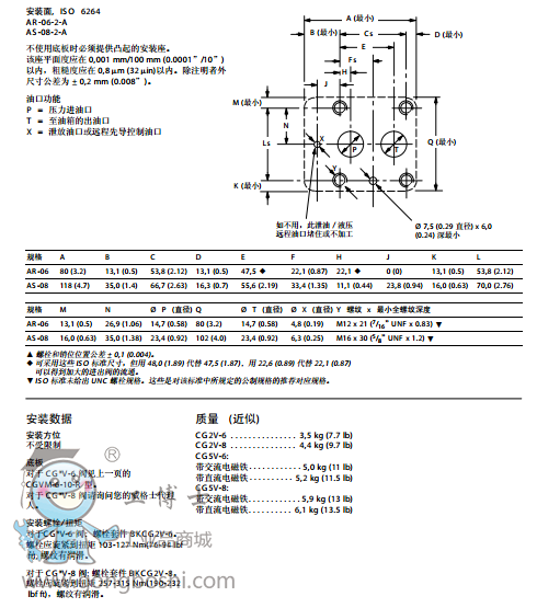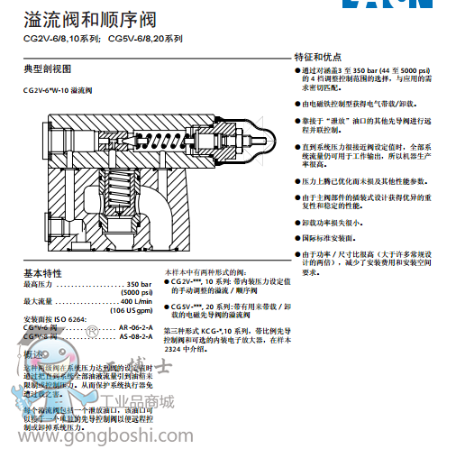 威格士vickers壓力控制閥板式安裝CG2V-6/8, 10 系列;CG5V-6/8, 20 系列 |
