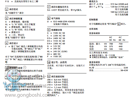 威格士vickers方向控制閥:濕式電磁方向控制閥DG4V-5, 20 系列 |
