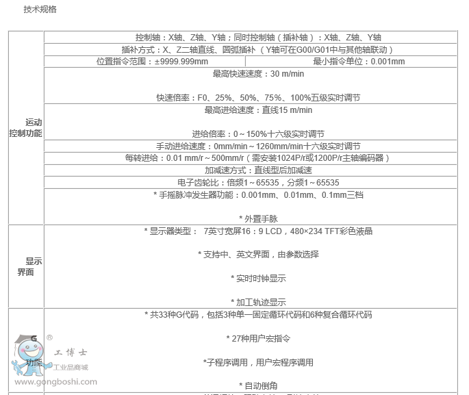 GSK980TA3是GSK980TA2的升級換代產品,系統采用ARM9硬件平臺,運行速度更快,確保高速、高效加工,具備二次曲線插補、橢圓插補、拋物線插補、凹槽加工循環指令及自動刀補等功能。前置RS232通信接口,前置USB接口,支持U盤文件操作和軟件升級,是經濟型數控系統的*佳選擇。
