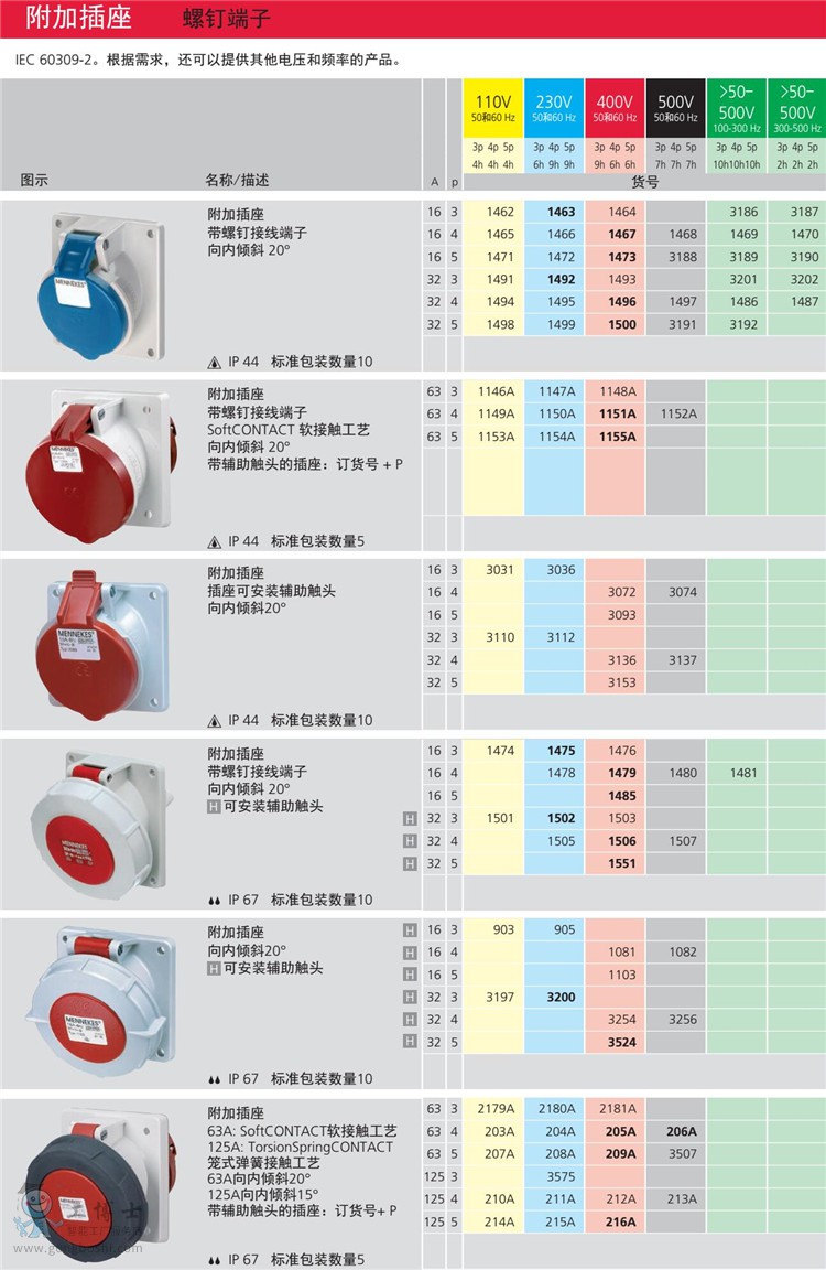 德國曼奈柯斯TYP:1473五芯16A電壓400V暗裝斜插IP44法蘭尺寸