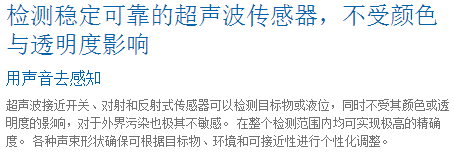 對射式傳感器由發射器和接收器組成。它具有無脈沖運行的特性,響應時間在所有超聲波傳感器中*短。應用包括: