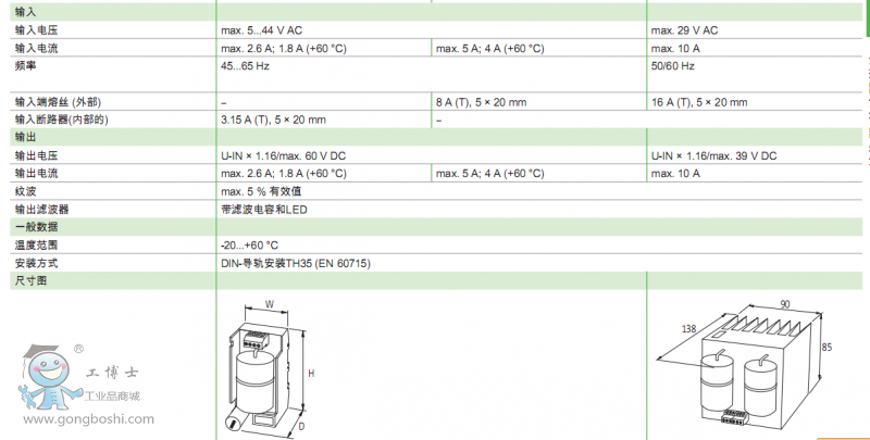 如果現(xiàn)場只要交流輸入,NG整流系列可以把它轉(zhuǎn)化為直流電壓。并且所有模塊都可以通過導(dǎo)軌安裝方式方便的安裝咋控制柜內(nèi)。