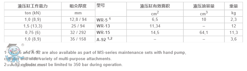 Enerpac恩派克 WR-5/WR-13/WR-15/A-92 擴(kuò)張式液壓缸
