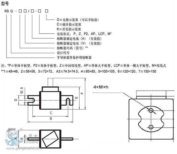 • RSG系列半導體器件保護用熔斷器(以下簡稱快速熔斷器),是繼RSF系列熔斷器開發成功之后,向技術性能更高,體積減小,額定容量增大新發展的又一系列產品。