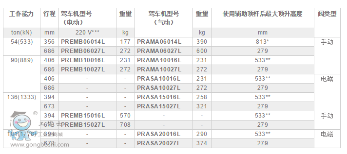 訂購示例:型號PREMI06014L一個具有 14" 的行程, 60 噸載重能力的架車機,帶一個手動閥和一個 208-240 VAC 的單相電機。