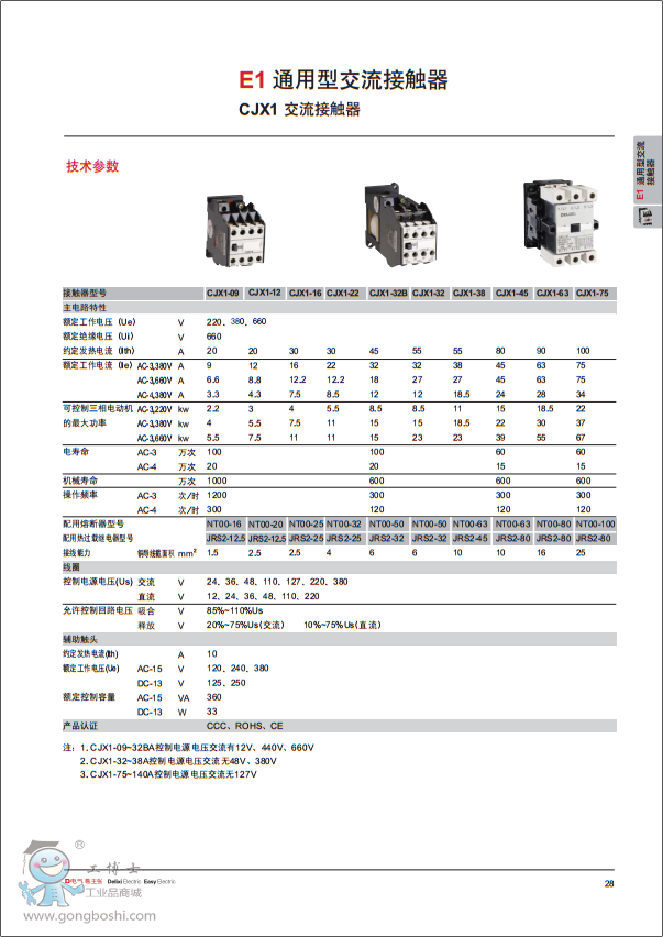 和分斷電路或頻繁起動和控制交流電動機,并可與適當的熱過載繼電器組成電磁起動器,以保護可能發生過載的電路