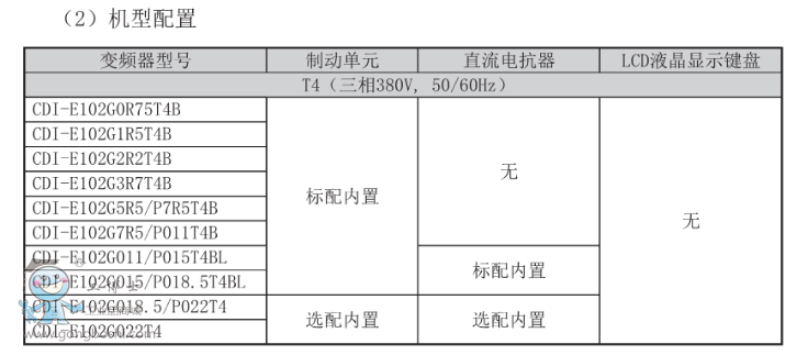 15kW及以下標(biāo)配內(nèi)置制動單元,18.5kW-22kW選配內(nèi)置制動單元,11kW,15kW標(biāo)配直流電抗器,18.5kW-22kW可選配。