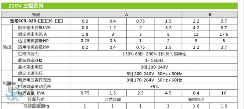 臺灣士林SC3-043-0.4K緊湊型變頻器單項440V