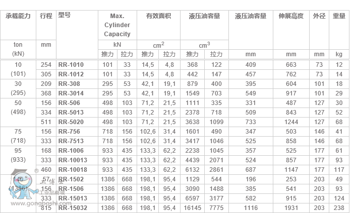 RR-系列,雙作用液壓油缸
