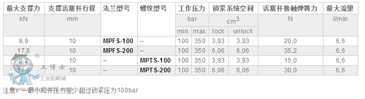 MP-系列,支撐油缸- Collet-Lok®自鎖設計