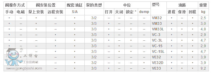 VM和VE系列都帶有用戶調節溢流閥允許操作者方便的為每一個應用設定工作壓力