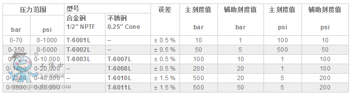 T-系列,系統(tǒng)測試用壓力表