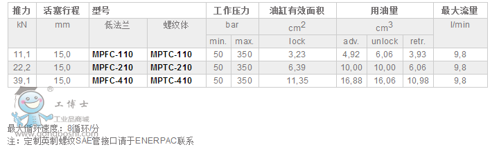 Enerpac恩派克 MP-系列,推力油缸-Collet-Lok® 自鎖設計