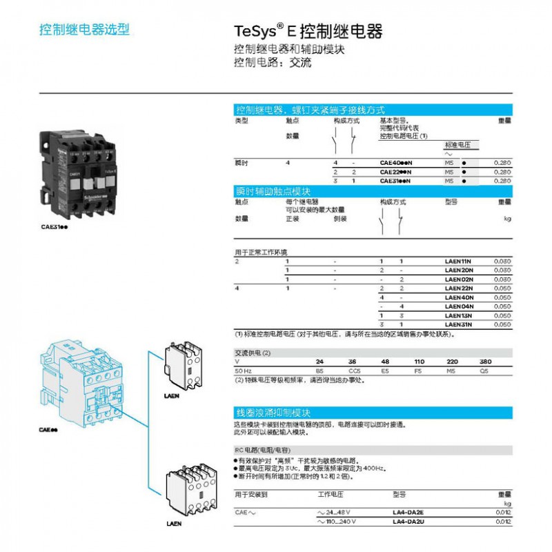 ● 額定控制電路電壓:24...380VAC