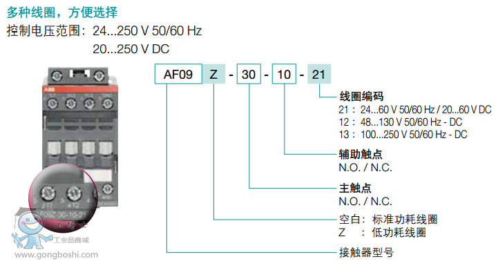 AF接觸器采用標準的AF技術,現已成為業內新標準。它采用電子控制線圈,比傳統方案具有更多優勢。可以與ABB其他廣泛的產品系列配合使用,隨時為您提供*佳的配置方案。