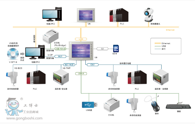 富士觸摸屏V9系列 V9060iT人機界面 8.4英寸 顯示分配率640x480 |