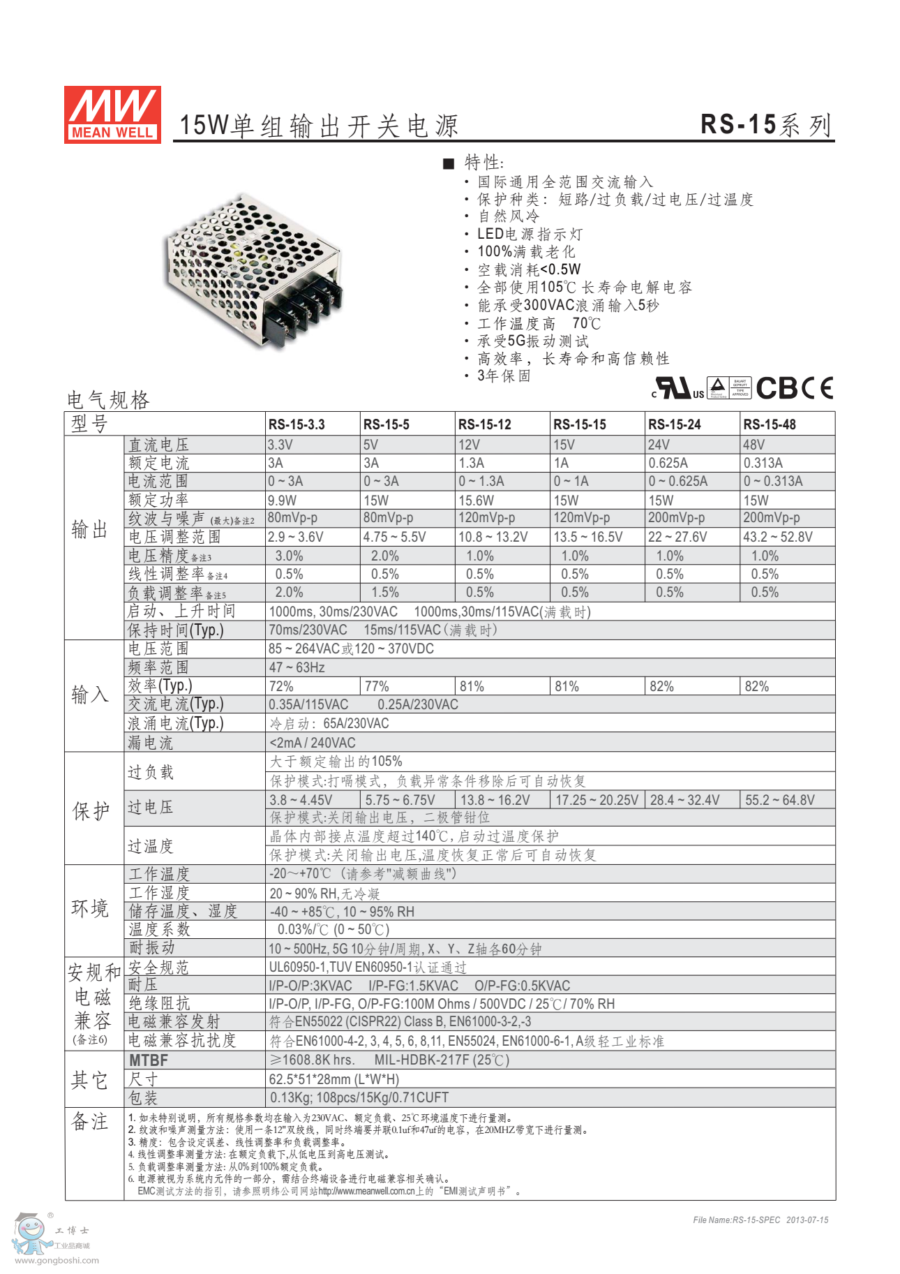 • 可承受300VAC突波輸入,全系列使用105℃高壽命電容