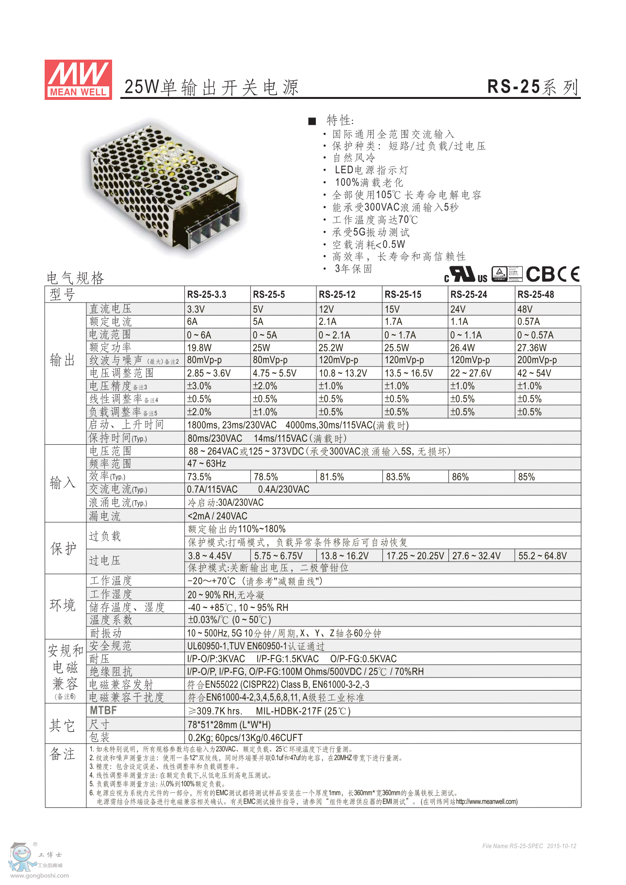 RS-25單輸出開關電源,有如下型號現貨供應: