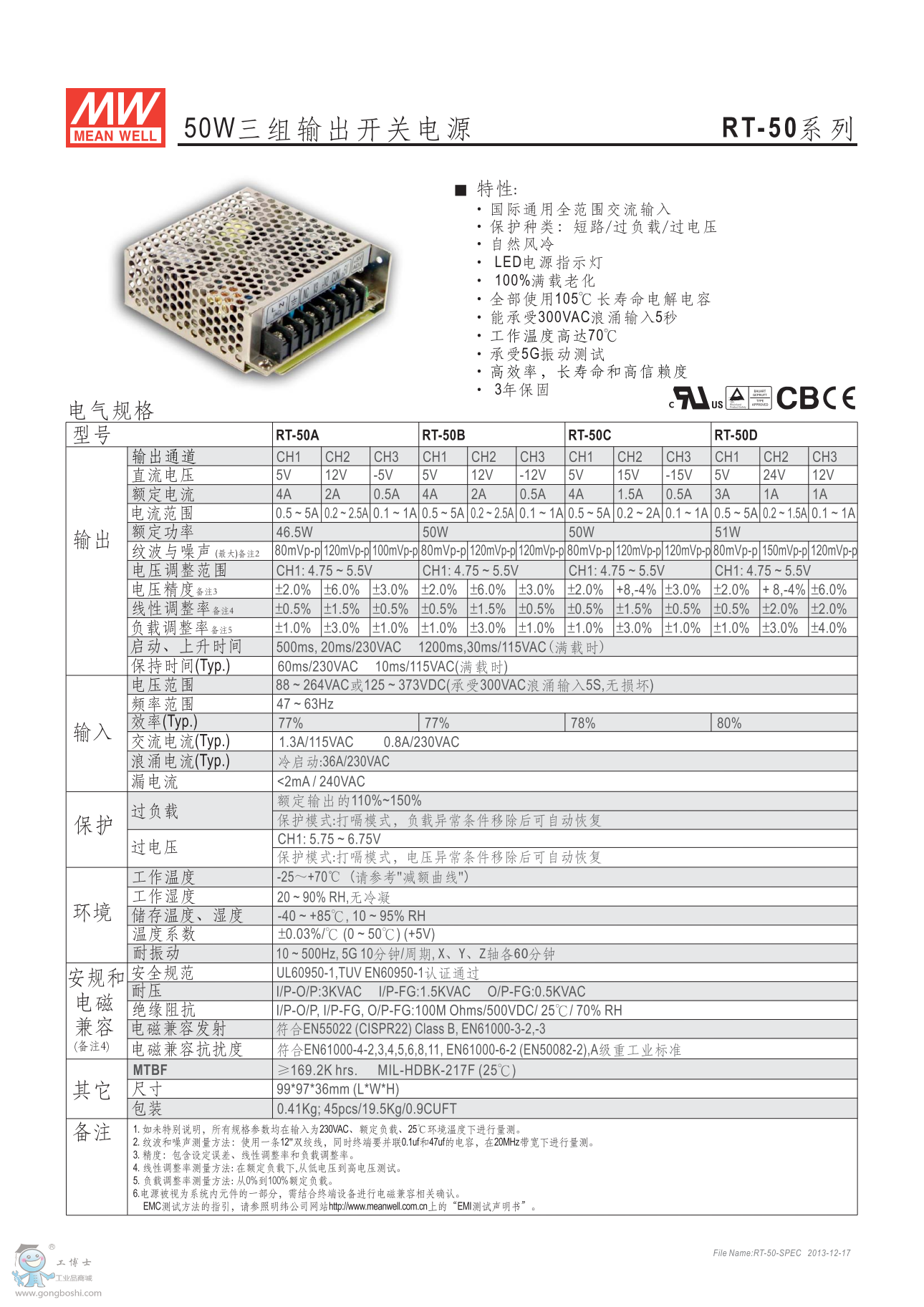 明緯開關電源 RT-50B