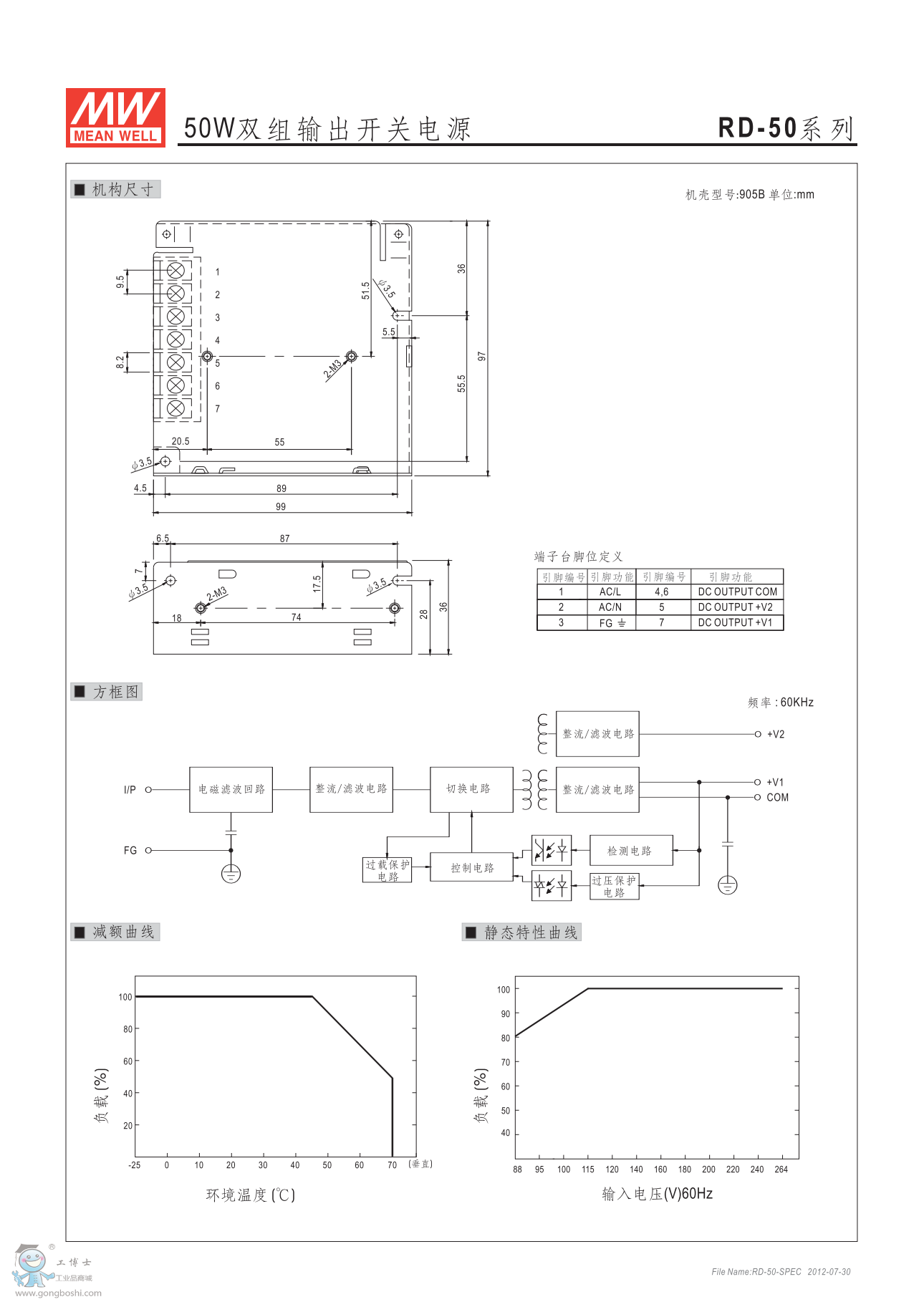 明緯RD-50A 50W雙組輸出開關(guān)電源 G3系列