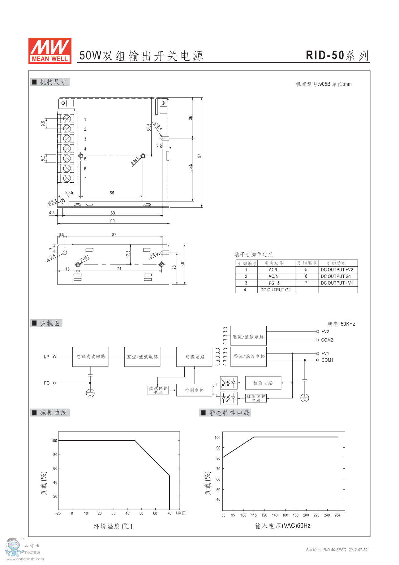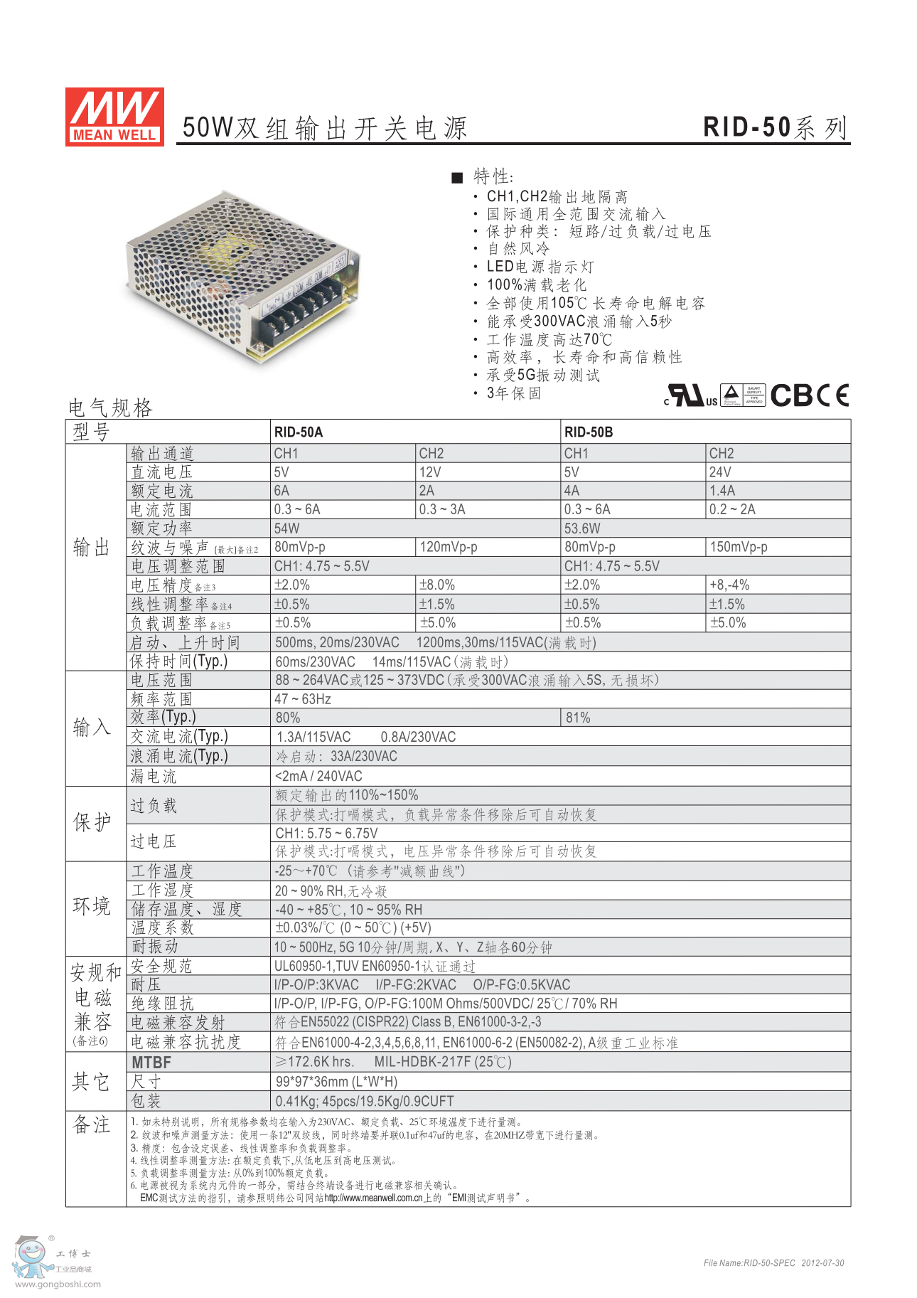 明緯RID-50A 50W雙組輸出開(kāi)關(guān)電源 G3系列