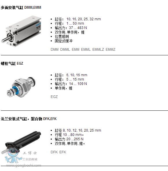 費斯托FESTO螺栓式和多安裝位式氣缸:DMM,DMML,EMM,EMML,EGZ,DFK,EFK