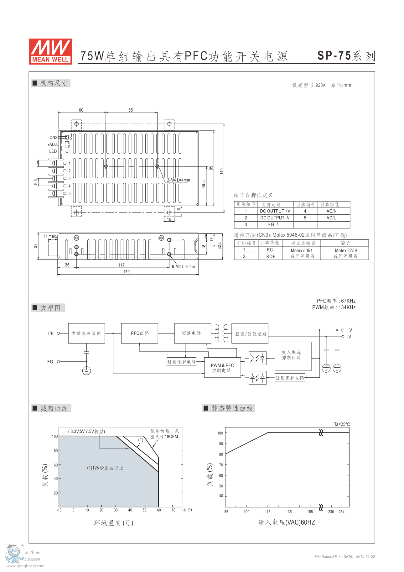 明緯電源SP-75-12 75W單組輸出有PFC功能 保障
