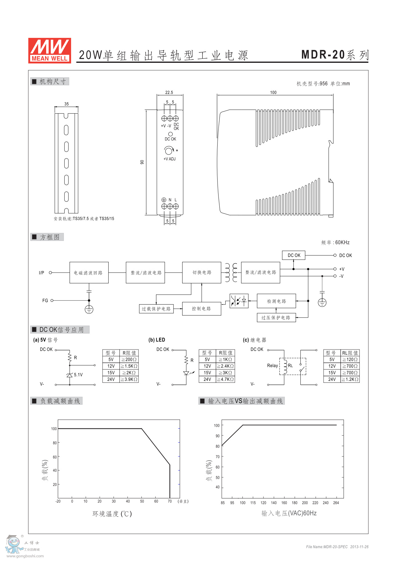 內建主動式功率因子矯正功能(active PFC)及過溫度保護 (MDR-100)