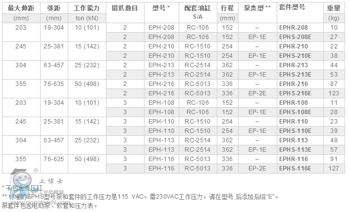 Enerpac恩派克 EPH-系列,Posi Lock® 液壓安全籠式拔輪器 液壓拉馬