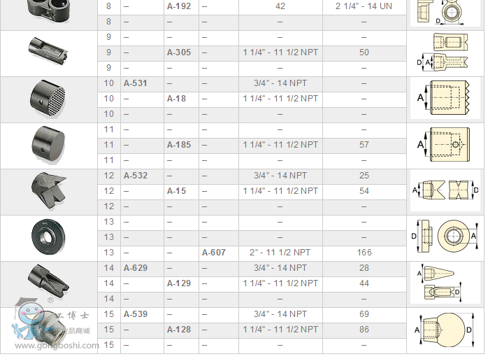 1:螺紋配件