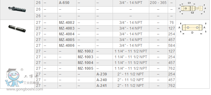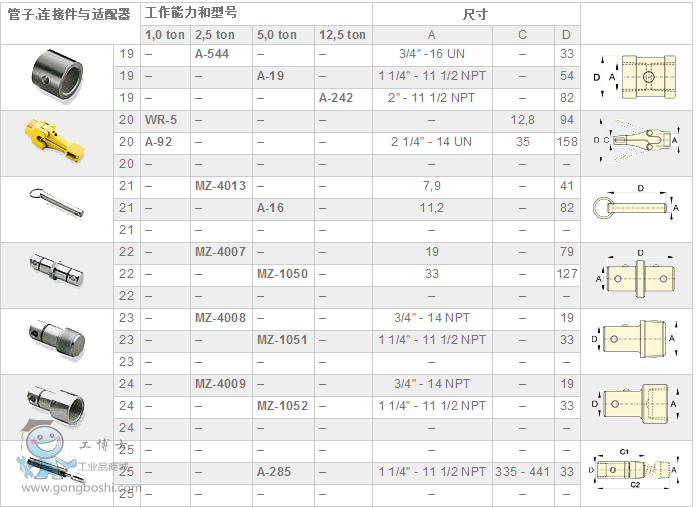 注意:Only use attachments provided with set. Non-Enerpac attachments and longer extension tubes will reduce column strength.