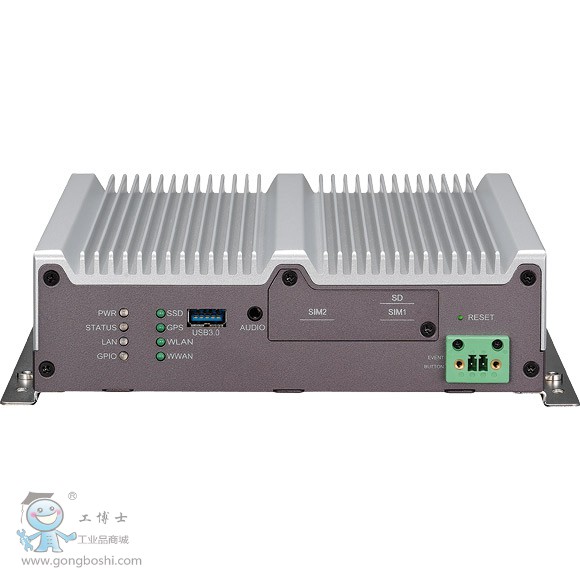 8 x LED for power, system status, storage, WWAN, WLAN, GPS, LAN, GPIO 2 x external accessible SIM card socket (selectable) with cover 1 x audio jack 3.5mm for WWAN voice communication, including 1 x Mic-In and 1 x Line-Out 1 x external accessible SD card socket with cover 1 x event button (trigger type) 1 x reset button 1 x type A USB 3.0 compliant host, supporting system boot up |